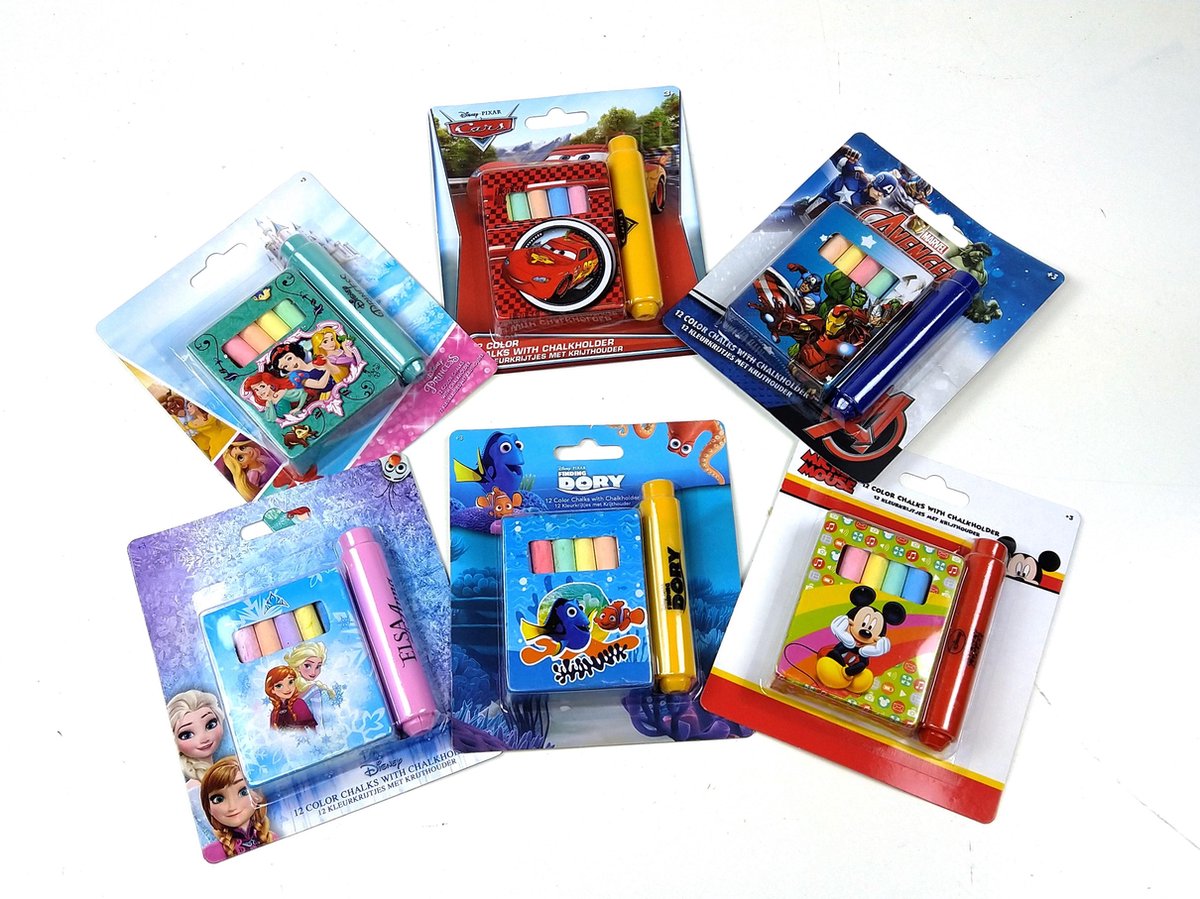 Deze leuke Disney krijtjes zijn superhandig. Met de bijgeleverde kruitjeshouder maak je de mooiste krijttekeningen! Deze leuke krijtjes worden verkocht per 3 verpakkingen. Krijt mee met de karakters van Frozen, de Disney Prinsessen, Cars, Mickey Mouse, Finding Dory en/of The Avengers. In een doosje zitten twaalf krijtjes in zes verschillende kleuren. Kleuren kunnen verschillen per pakje.