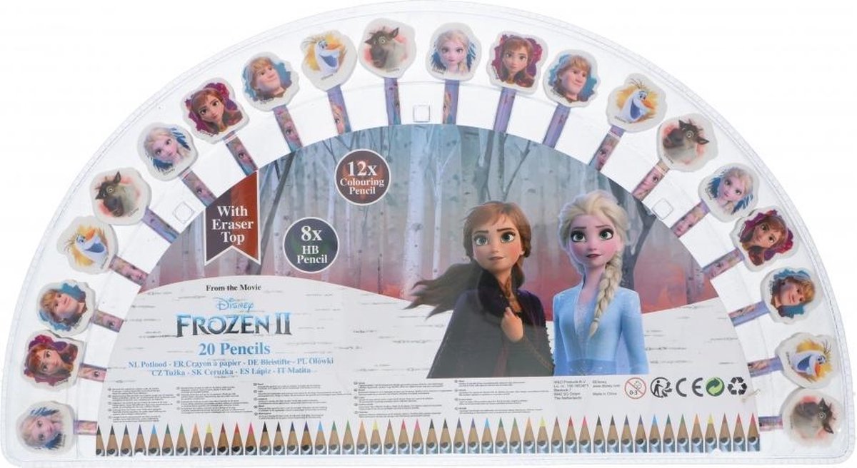 Disney Frozen II potlodenset Maak de mooiste tekeningen met deze potlodenset van Disney! De set is geïnspireerd op de populaire film Frozen II. De potloden bevatten toppers met de gezichten van verschillende personages uit de film. Olaf, Elsa, Anna en nog veel meer andere personages houden je gezelschap terwijl je de gaafste kunstwerken maakt. Specificaties: Kleur: multicolor Geslacht: junior Materiaal: hout Afmetingen verpakking: 46 x 26 x 1,5 cm (L x B x H) Gewicht: 800 gram Leeftijd: vanaf 3 jaar Inhoud: 12 Kleurpotloden 8 HB potloden