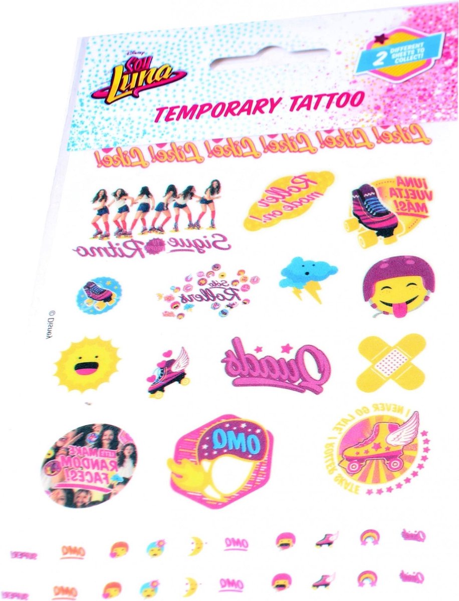 Disney Soya Luna tattoos Waar je ook heen gaat, dit is de ultieme manier om jouw look compleet te maken! De tatoeages blijven ongeveer vier tot zes dagen zitten. Je kan er zelfs mee onder de douche. Specificaties: Kleur: multicolor Materiaal: papier Geslacht: meisjes Afmetingen: 9,5 x 13 cm Geschikt voor kinderen vanaf 3 jaar. Inhoud: 1 Vel met tattoos