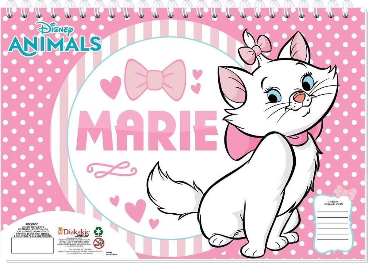 Disney Marie sticker- en kleurboek Haal al je potloden, stiften en andere spulletjes uit de kast en maak de mooiste tekeningen in dit sticker- en kleurboek. Het boek bevat veertig pagina's met tekeningen en twee stickervellen. Specificaties: Kleur: roze, wit Geslacht: meisjes Materiaal: papier Afmetingen: 23 x 33 cm Aantal pagina's: 40 Bindwijze: ringband Leeftijd: vanaf 4 jaar