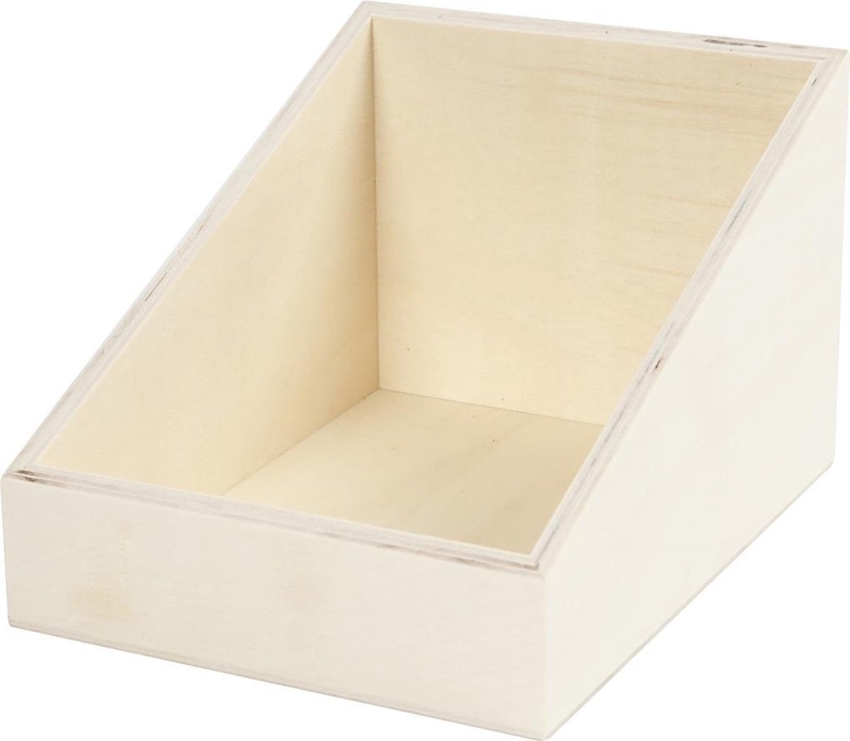 Houten doos met schuin aflopende zijkanten en lage voorkant.Houten doos met schuin aflopende zijkanten en lage voorkant.