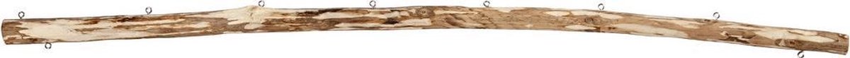 Ronde houten stok met bast uitgerust met 2 kleine metalen ogen (diameter binnenkant 3 mm) voor het ophangen.Ronde houten stok met bast uitgerust met kleine metalen ogen (diameter binnenkant 3 mm) en 2 ogen om op te hangen en 6 voor het ophangen van decoraties.