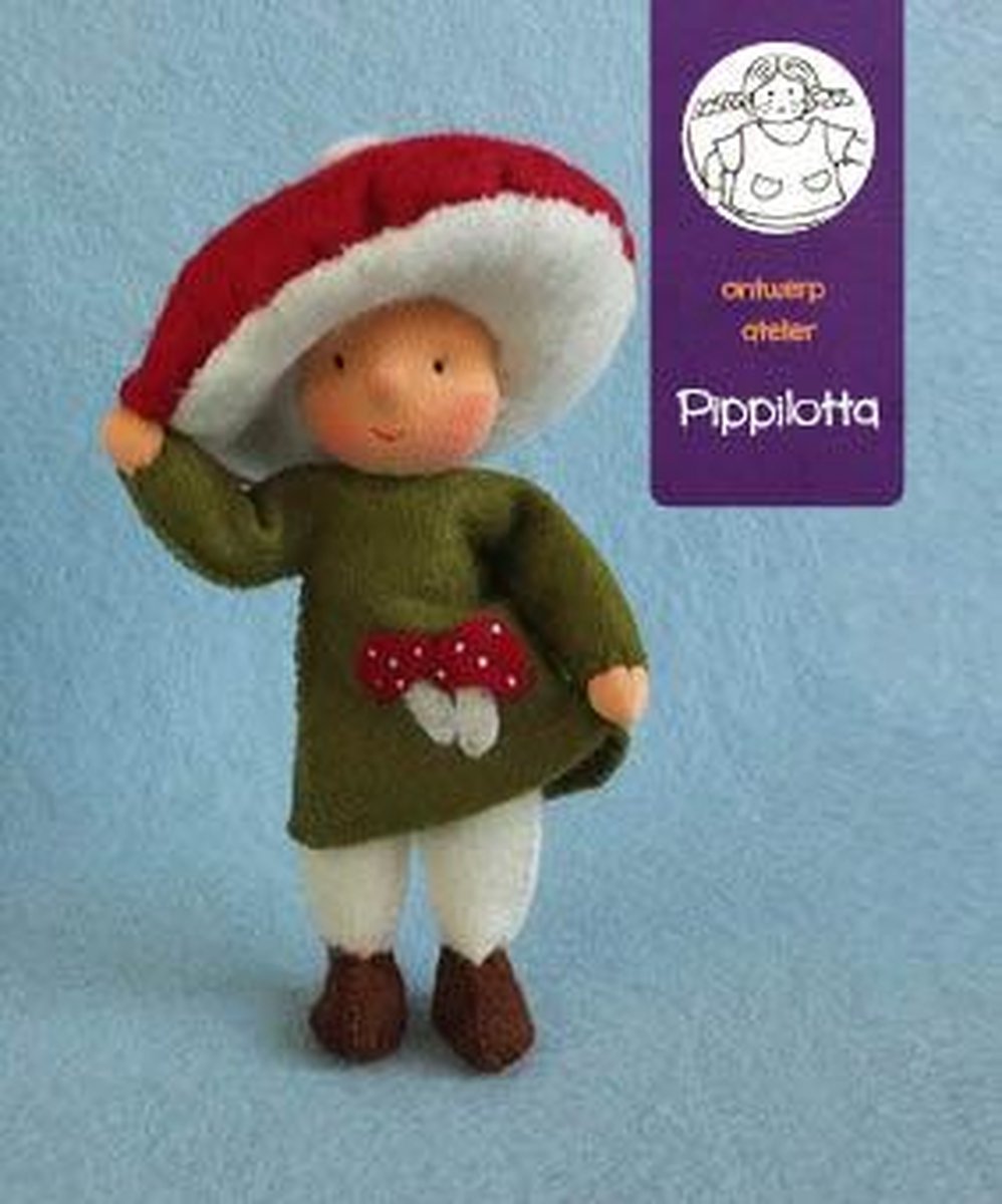 Dit is een diy pakket van atelier Pippilotta. Een pakket voor het maken van een kabouterkind van 15 cm. Te maken uit 100% wolvilt.