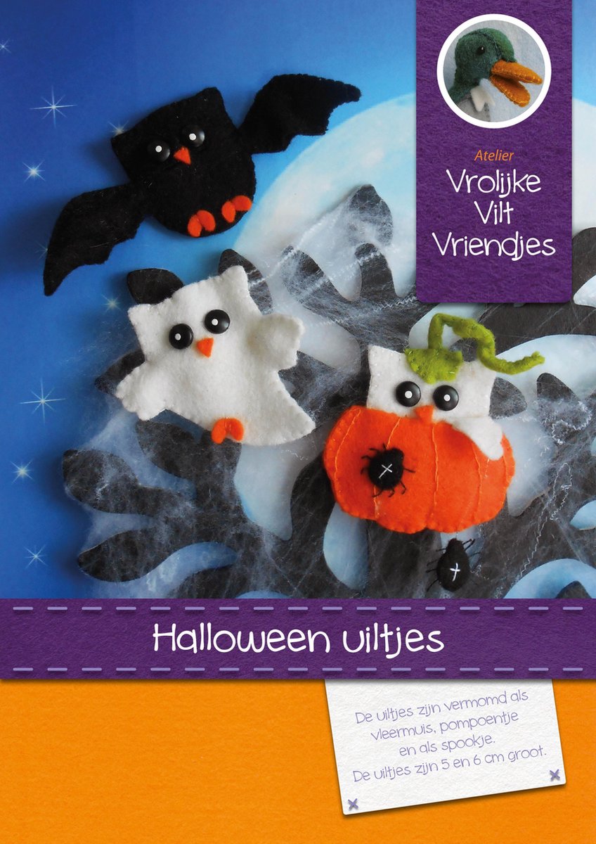 DIY pakket voor het maken van 6 halloween uiltjes. Uiltje als vleermuis, spook en in een pompoen.