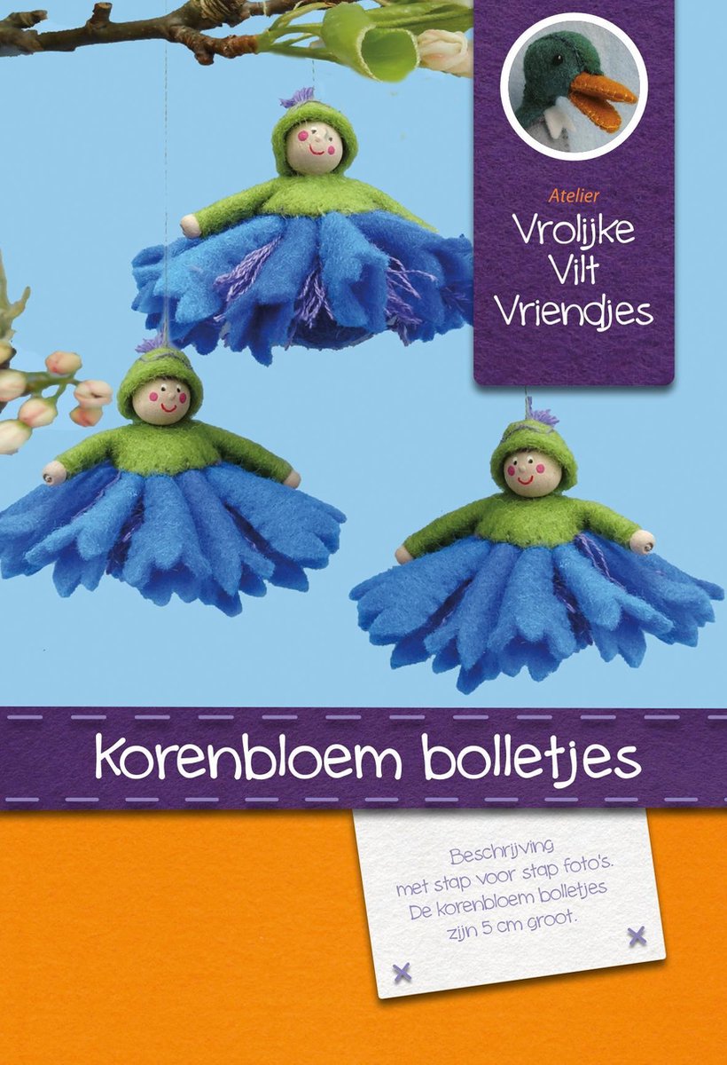 Pakket voor het maken van 3 korenbloem bolletjes uit sprookjes wolvilt. De wolbal bolletjes zijn 2 cm doorsnee. De bloem is gemaakt van prachtig handgeverfd sprookjeswolvilt. De handgeverfde kralen zitten ook in dit complete pakket.