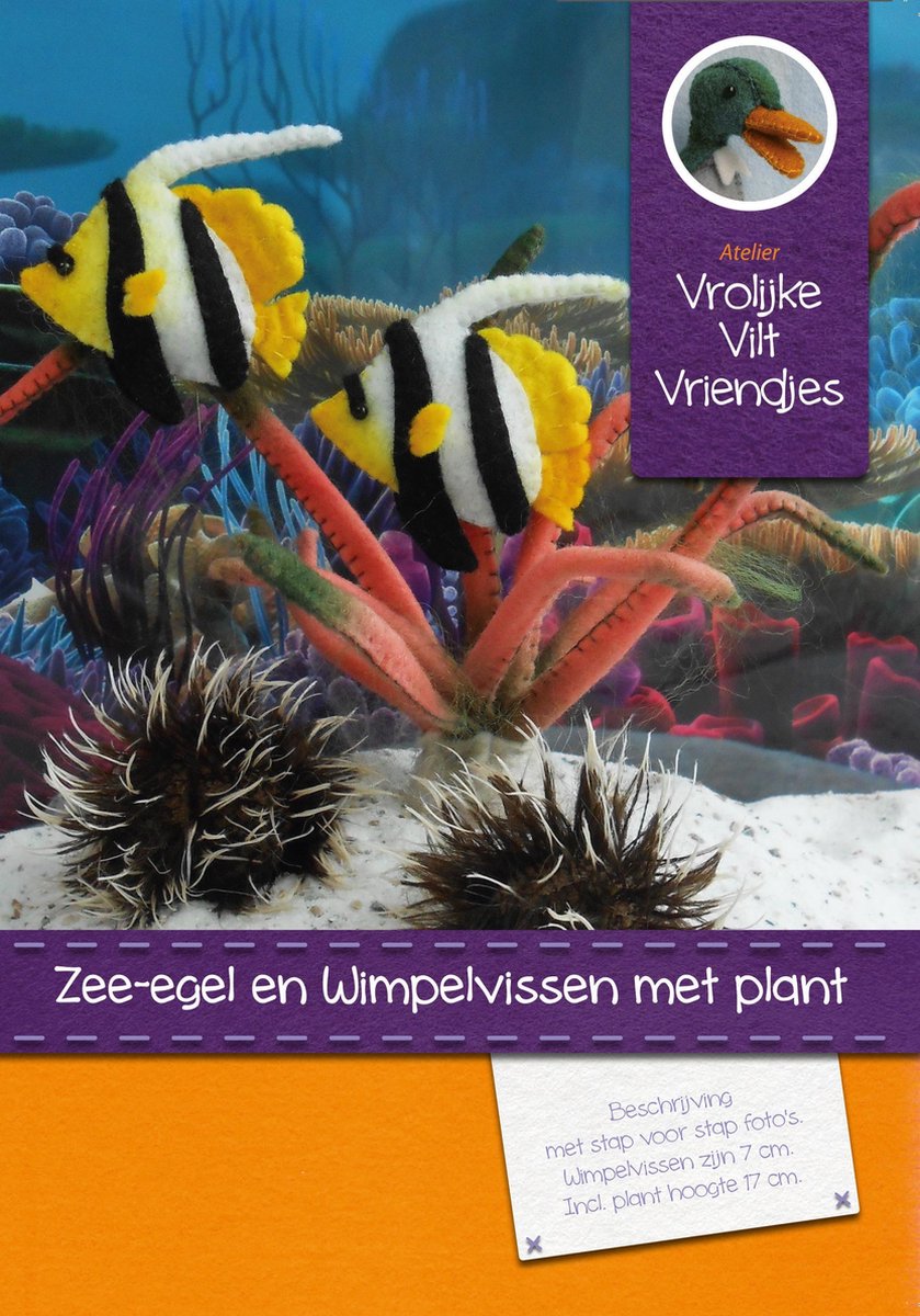 Diy pakket voor het maken van 2 wimpelvissen, 2 zee-egels en een waterplant. Compleet pakket met stap-voor stap foto's en duidelijke beschrijving.