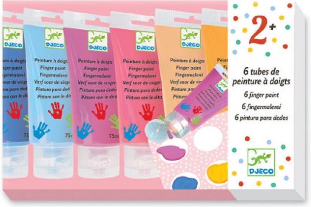Je kleine kunstenaar zal het heerlijk vinden om met de 6 'Sweet' kleuren van Djeco aan de slag te gaan, met zijn vingers, met een sponsje of met een roller, het kan allemaal. ?De verf is gemakkelijk met de vingers uit te smeren en heeft een aangename textuur. Na het schilderen is de verf is met een beetje water en een spons zo afgewassen. Afmetingen doos: 13 x 20 x 7,5 cm. Inhoud: 6 tubes verf in donkerblauw, lichtblauw, paars, roze, perzik en oranje. Geschikt voor kunstenaars vanaf 2 jaar.