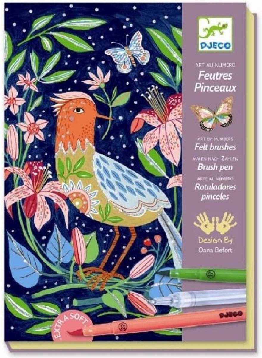 Djeco kleuren op nummer in het thema in de tuin is een prachtige knutseldoos met 4 voorgedrukte kleurplaten, 6 viltstiften en een glitterpen . Kleuren op nummer is ideaal voor beginnende kunstenaars. Zo heeft iedere kleurplaat genummerde vakjes die overeenstemmen met de nummer op de viltstift. Kleur eerst de kleurplaten in en voeg daarna glitter accenten toe met de glitterpen om af te werken. Met deze leuke Djeco kleuren op nummer knutseldoos creër je prachtige schilderijtjes van betoverende natuurtaferelen. Kenmerken van deze Djeco - kleuren op nummer - In de tuin +7jr: Inhoud: 4 kleurplaten 28 x 21 cm 6 viltstiften 1 glitterpen Instructieboekje Afmetingen: 16.5 x 23 x 4 cm Geschikt voor kinderen van 7 tot 13 jaar