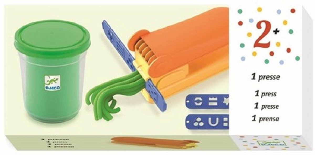 Met dit handige pakket uit de collectie van Djeco kunnen kinderen verschillende lange strengen boetseerklei maken. Het wordt geleverd met een doosje modelleringsdeeg, de pers en twee plastic mallen zodat de vorm van de strengen kan worden veranderd. Geweldig voor zintuiglijk spelen.