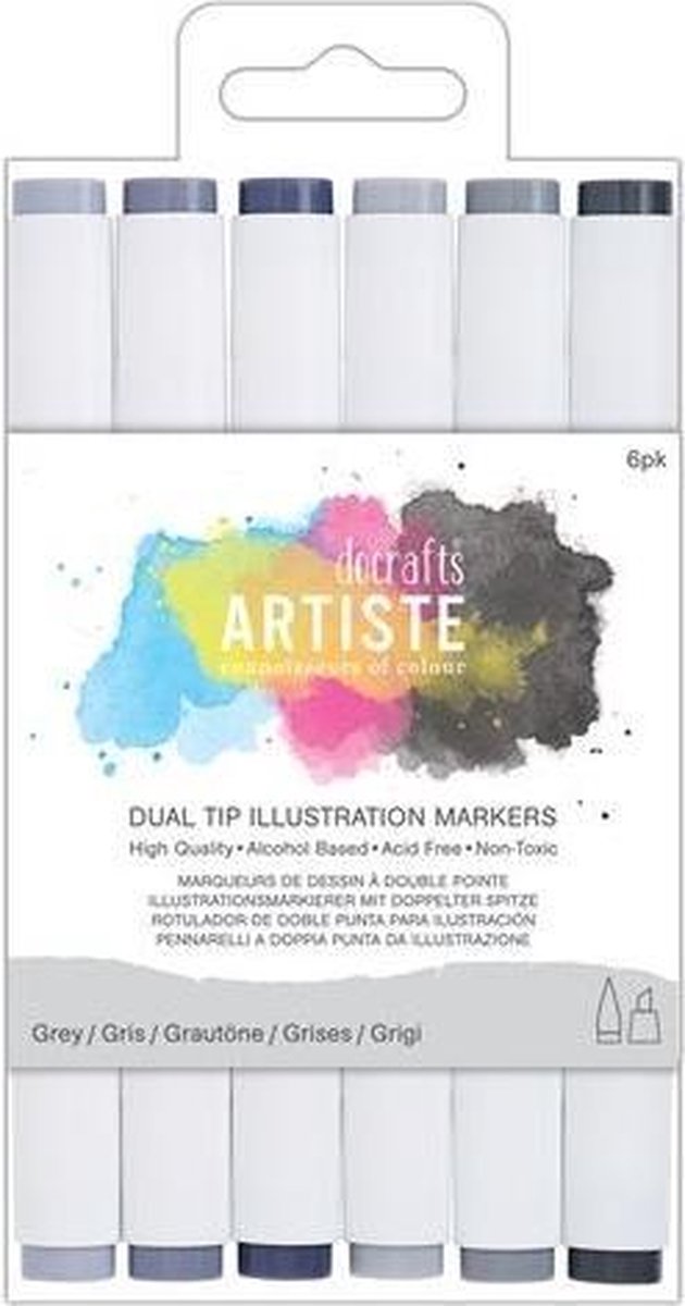 Dual Tip Illustratie Markers - Beitel/Borstel (6pak) - Grijs