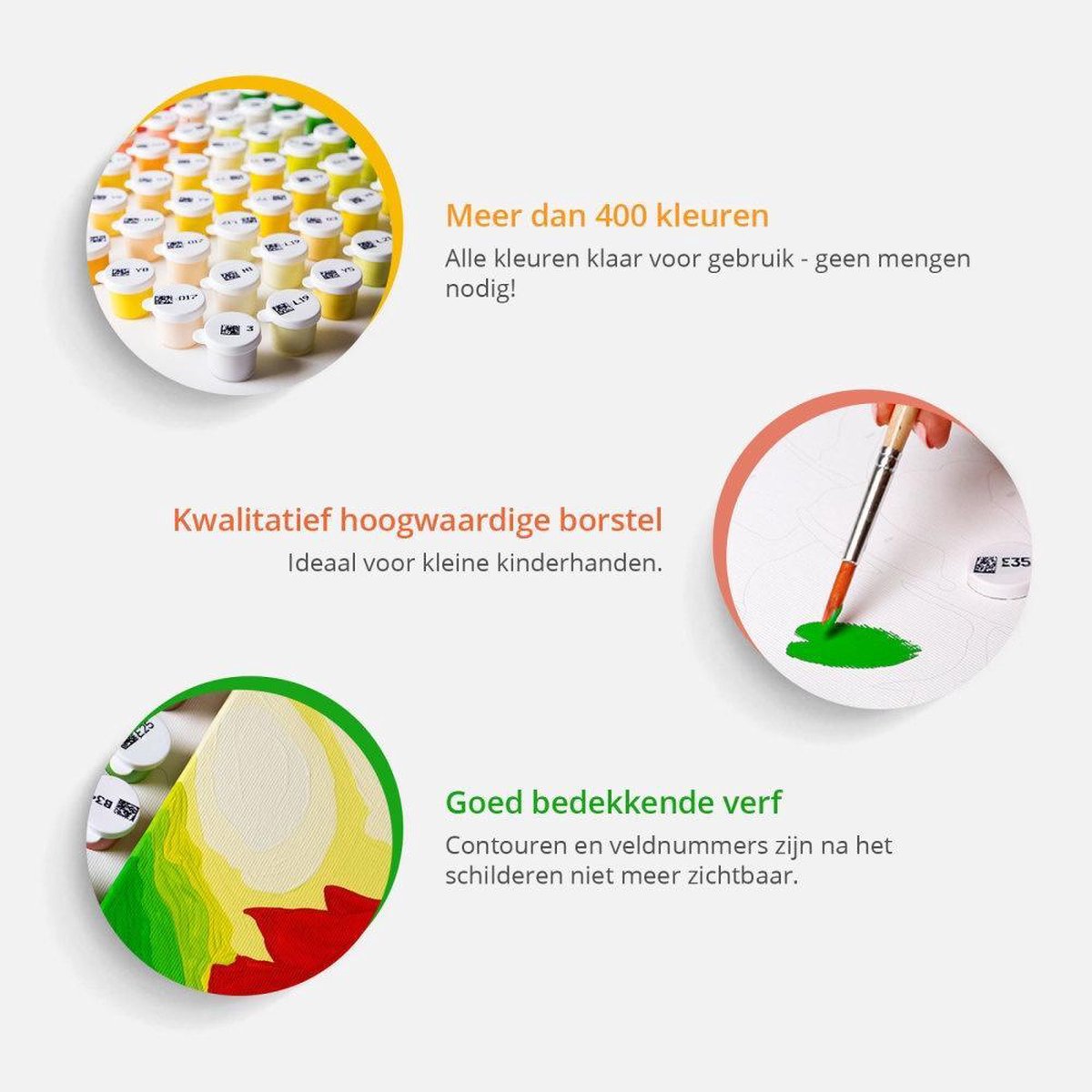 Ontwaak uw creativiteit Als u wilt dat uw kind zijn vrije tijd op een creatieve manier doorbrengt door zijn manuele vaardigheden en zijn talent als kleine artiest te ontwikkelen, dan hebben wij iets voor u! Schilderkit voor kinderen Cactus en Beer. Als uw kind graag wil tekenen of kleuren zal hij of zij onze schilderijenset Cactus en Beer zeer op prijs stellen. Het schilderij op zich is een ideaal cadeau-idee om de kamer van het kind te versieren. De schattige kleine dieren en de sprokkjesfiguren wachten op de penseelstreek. Voor kinderen van 7 tot 9 jaar presenteren wij een complete schilderijenset wat vermaakt en ontwikkelt tegelijkertijd. De set bevat: * Schemapatroon met gekleurde velden - om uw kind te helpen schilderen * Professionele borstel * Een set acrylverf in containers, speciaal geselecteerd op het door u gekozen patroon * Diagram patroon met gekleurde velden - om uw kind te helpen om te schilderen Het heilzame effect van schilderen Weet u dat schilderen een heilzaam