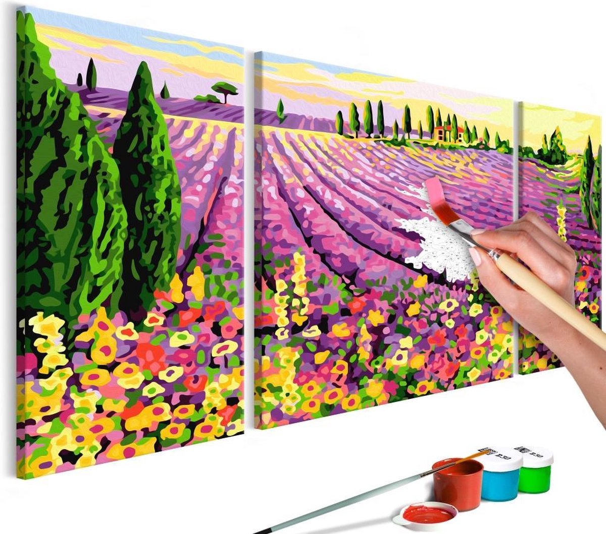 Ontwaak uw creativiteit Wilt u creatief ontspannen? Op zoek naar een origineel avontuur, waar u ook uw dierbaren kunt uitnodigen? Tegelijkertijd wordt u wakker van uw creativiteit en voelt u zich een echte kunstenaar. Niets is makkelijker ! Ontdek de meest originele hobby van dit jaar - schilderen op nummers. Een kleurrijke schilderij kit door nummers Lavendel Velden is een ongebruikelijk idee voor het besteden van vrije tijd. Schilderij kit door nummers Lavendel Velden is een activiteit voor mensen van alle leeftijden. Perfect voor amateur schilders! Dit schilderij zal perfect zijn als wandversiering. We presenteren een complete schilderkit voor volwassenen en ambitieuze kinderen ouder dan 12 jaar. De set bevat: * Schemapatroonmet gekleurde velden - om uw kinderen te helpen schilderen * 2 borstels met verschillende borsteldiktes * Een set acrylverf in containers, speciaal geselecteerd voor het door u gekozen patroon. * Diagram patroon met gekleurde velden - om u te helpen met