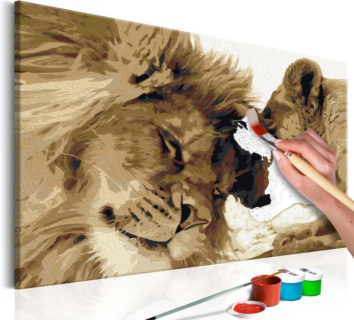 Ontwaak uw creativiteit Wilt u creatief ontspannen? Op zoek naar een origineel avontuur, waar u ook uw dierbaren kunt uitnodigen? Tegelijkertijd wordt u wakker van uw creativiteit en voelt u zich een echte kunstenaar. Niets is makkelijker ! Ontdek de meest originele hobby van dit jaar - schilderen op nummers. Een kleurrijke schilderij kit door nummers Leeuwen Liefde is een ongebruikelijk idee voor het besteden van vrije tijd. Schilderij kit door nummers Leeuwen Liefde is een activiteit voor mensen van alle leeftijden. Perfect voor amateur schilders! Dit schilderij zal perfect zijn als wandversiering. We presenteren een complete schilderkit voor volwassenen en ambitieuze kinderen ouder dan 12 jaar. De set bevat: * Schemapatroonmet gekleurde velden - om uw kinderen te helpen schilderen * 2 borstels met verschillende borsteldiktes * Een set acrylverf in containers, speciaal geselecteerd voor het door u gekozen patroon. * Diagram patroon met gekleurde velden - om u te helpen met