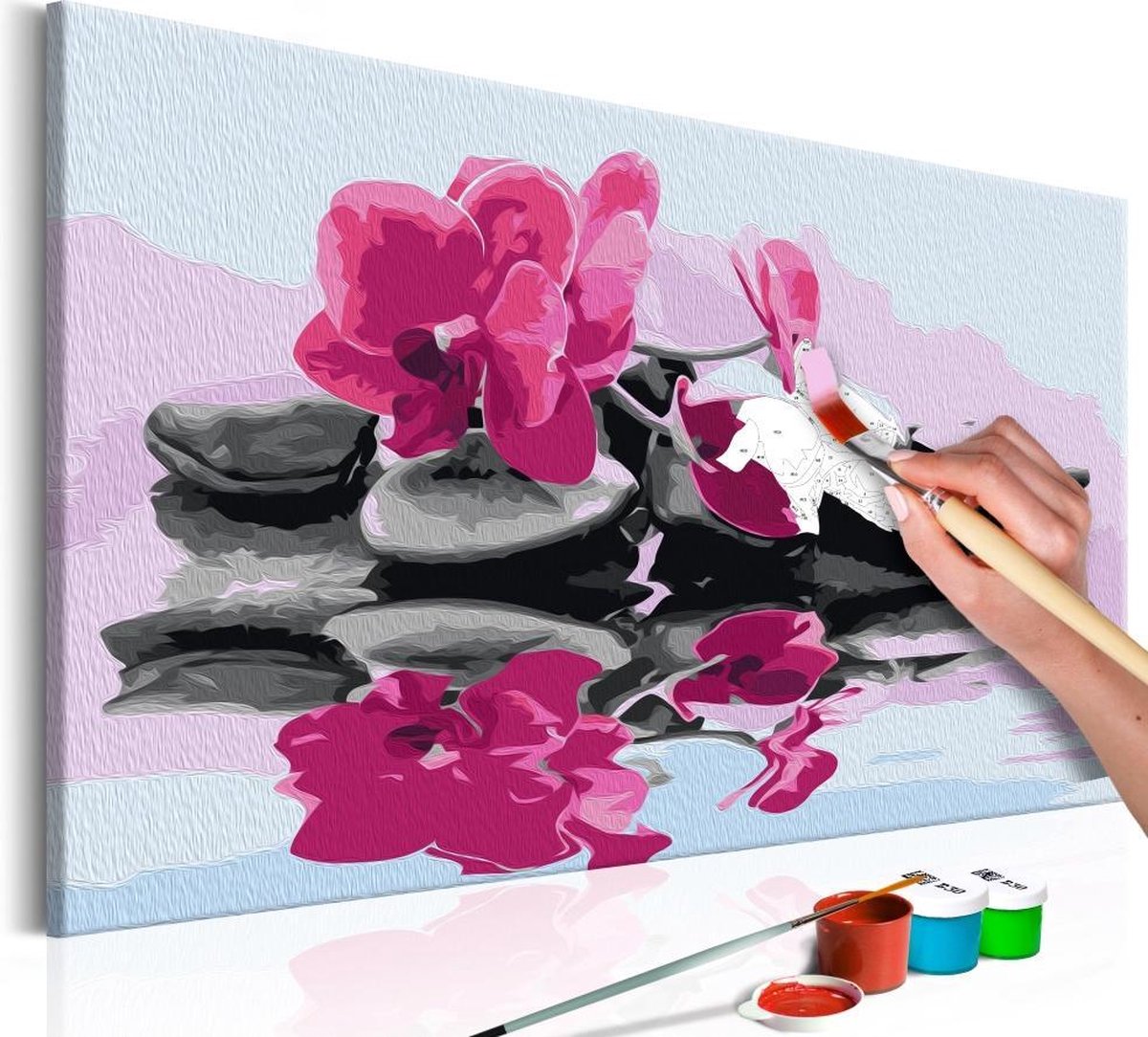 Ontwaak uw creativiteit Wilt u creatief ontspannen? Op zoek naar een origineel avontuur, waar u ook uw dierbaren kunt uitnodigen? Tegelijkertijd wordt u wakker van uw creativiteit en voelt u zich een echte kunstenaar. Niets is makkelijker ! Ontdek de meest originele hobby van dit jaar - schilderen op nummers. Een kleurrijke schilderij kit door nummers Orchidee met Zen Stenen is een ongebruikelijk idee voor het besteden van vrije tijd. Schilderij kit door nummers Orchidee met Zen Stenen is een activiteit voor mensen van alle leeftijden. Perfect voor amateur schilders! Dit schilderij zal perfect zijn als wandversiering. We presenteren een complete schilderkit voor volwassenen en ambitieuze kinderen ouder dan 12 jaar. De set bevat: * Schemapatroonmet gekleurde velden - om uw kinderen te helpen schilderen * 2 borstels met verschillende borsteldiktes * Een set acrylverf in containers, speciaal geselecteerd voor het door u gekozen patroon. * Diagram patroon met gekleurde velden - om u te