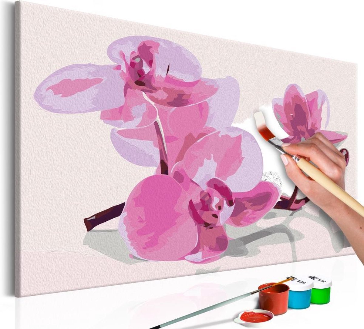 Ontwaak uw creativiteit Wilt u creatief ontspannen? Op zoek naar een origineel avontuur, waar u ook uw dierbaren kunt uitnodigen? Tegelijkertijd wordt u wakker van uw creativiteit en voelt u zich een echte kunstenaar. Niets is makkelijker ! Ontdek de meest originele hobby van dit jaar - schilderen op nummers. Een kleurrijke schilderij kit door nummers Orchideeën is een ongebruikelijk idee voor het besteden van vrije tijd. Schilderij kit door nummers Orchideeën is een activiteit voor mensen van alle leeftijden. Perfect voor amateur schilders! Dit schilderij zal perfect zijn als wandversiering. We presenteren een complete schilderkit voor volwassenen en ambitieuze kinderen ouder dan 12 jaar. De set bevat: * Schemapatroonmet gekleurde velden - om uw kinderen te helpen schilderen * 2 borstels met verschillende borsteldiktes * Een set acrylverf in containers, speciaal geselecteerd voor het door u gekozen patroon. * Diagram patroon met gekleurde velden - om u te helpen met schilderen Voor