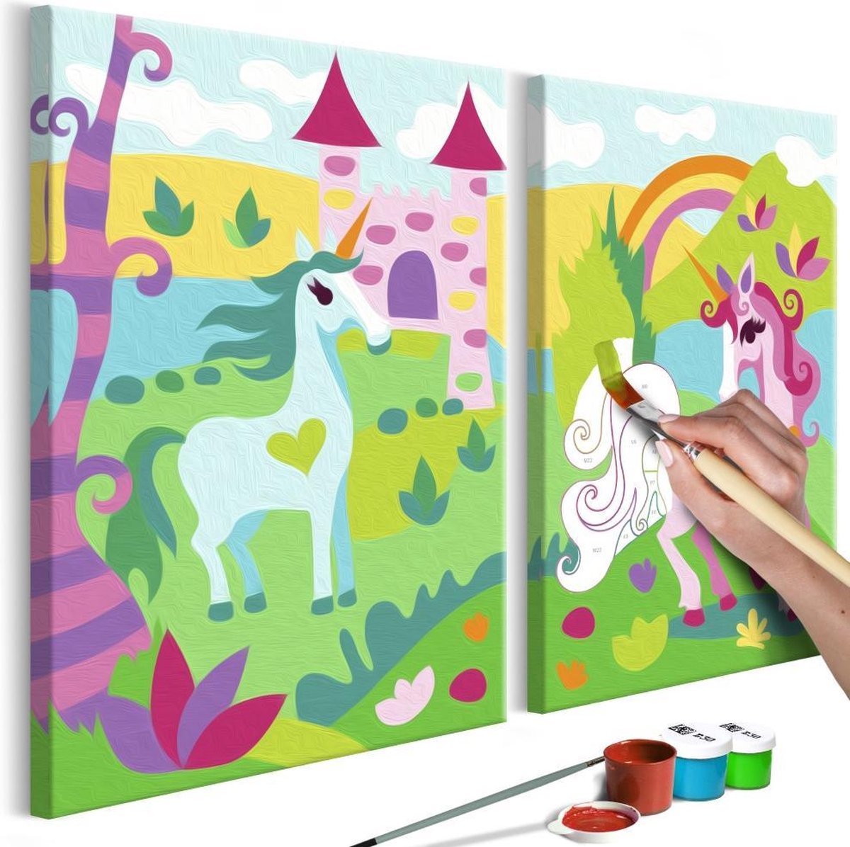 Ontwaak uw creativiteit Als u wilt dat uw kind zijn vrije tijd op een creatieve manier doorbrengt door zijn manuele vaardigheden en zijn talent als kleine artiest te ontwikkelen, dan hebben wij iets voor u! Schilderkit voor kinderen Sprookjes Eenhoorn. Als uw kind graag wil tekenen of kleuren zal hij of zij onze schilderijenset Sprookjes Eenhoorn zeer op prijs stellen. Het schilderij op zich is een ideaal cadeau-idee om de kamer van het kind te versieren. De schattige kleine dieren en de sprokkjesfiguren wachten op de penseelstreek. Voor kinderen van 7 tot 9 jaar presenteren wij een complete schilderijenset wat vermaakt en ontwikkelt tegelijkertijd. De set bevat: * Schemapatroon met gekleurde velden - om uw kind te helpen schilderen * Professionele borstel * Een set acrylverf in containers, speciaal geselecteerd op het door u gekozen patroon * Diagram patroon met gekleurde velden - om uw kind te helpen om te schilderen Het heilzame effect van schilderen Weet u dat schilderen een