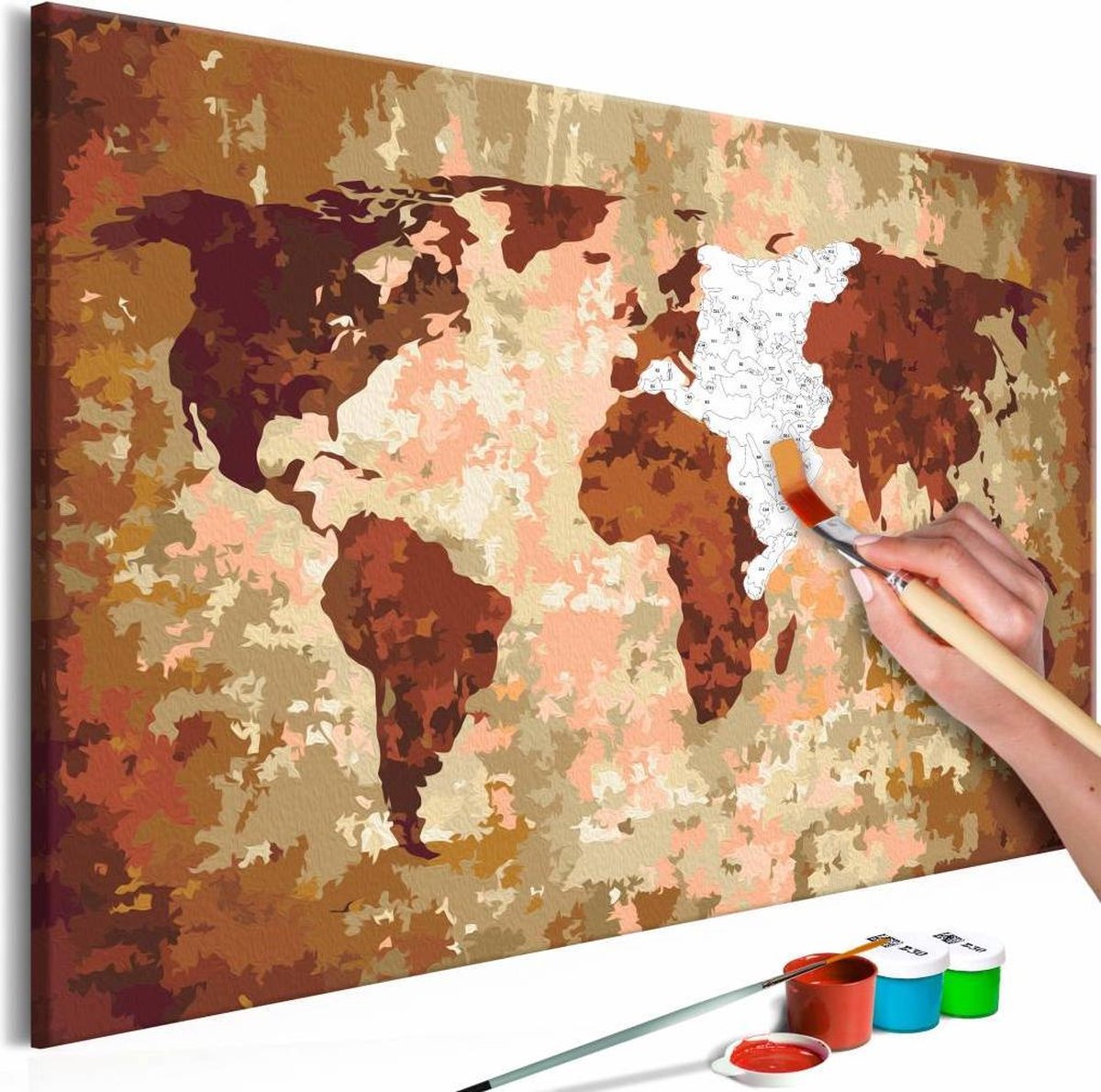Ontwaak uw creativiteit Wilt u creatief ontspannen? Op zoek naar een origineel avontuur, waar u ook uw dierbaren kunt uitnodigen? Tegelijkertijd wordt u wakker van uw creativiteit en voelt u zich een echte kunstenaar. Niets is makkelijker ! Ontdek de meest originele hobby van dit jaar - schilderen op nummers. Een kleurrijke schilderij kit door nummers Wereldkaart Bruin is een ongebruikelijk idee voor het besteden van vrije tijd. Schilderij kit door nummers Wereldkaart Bruin is een activiteit voor mensen van alle leeftijden. Perfect voor amateur schilders! Dit schilderij zal perfect zijn als wandversiering. We presenteren een complete schilderkit voor volwassenen en ambitieuze kinderen ouder dan 12 jaar. De set bevat: * Schemapatroonmet gekleurde velden - om uw kinderen te helpen schilderen * 2 borstels met verschillende borsteldiktes * Een set acrylverf in containers, speciaal geselecteerd voor het door u gekozen patroon. * Diagram patroon met gekleurde velden - om u te helpen met