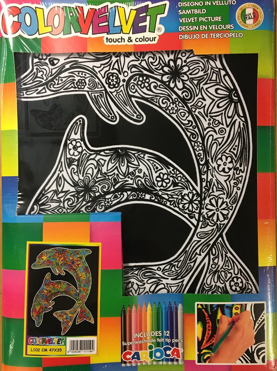 Dolfijnen Colorvelvet A3 + 12 viltstiften