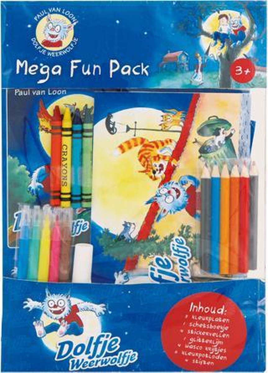 Beleef enorm veel plezier met de Dolfje Wolfje Mega Fun Pack! Leeftijd vanaf 3 jaar. Inhoud: Kleurplaten Schetsboekje 4 Stickervellen Glitterlijm 4 Krijtjes 6 Kleurpotloden 5 Stiften