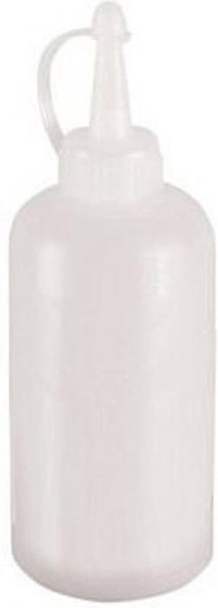 Leuk en handig kunststof flesje met fijne doseerdop. Dit flesje met een inhoud van 250 ml. is geschikt voor het tekenen met verf (op waterbasis), het precies aanbrengen van gekleurd zand of voor eventueel een andere toepassing. De doseertuit kan afgeknipt worden op de gewenste opening. Dit mag niet ontbreken bij uw knutselspullen.Het flesje heeft een (totale) hoogte van 18 cm en een diameter van circa 5,5 cm. De prijs is voor 5 van deze flesjes.