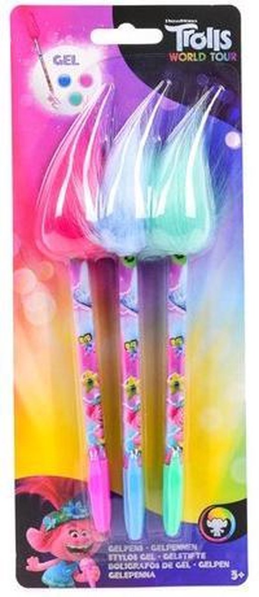 Slammer Trolls 2 gelpennen set van 3 Maak de mooiste creaties met deze gelpennen van Trolls 2. De gelpennen hebben drie verschillende kleuren en hebben leuke afbeeldingen van Trolls 2. Specificaties: Kleur: multicolor Materiaal: kunststof Geslacht: junior Kleur: groen, blauw, roze Inhoud: 3 Gelpennen