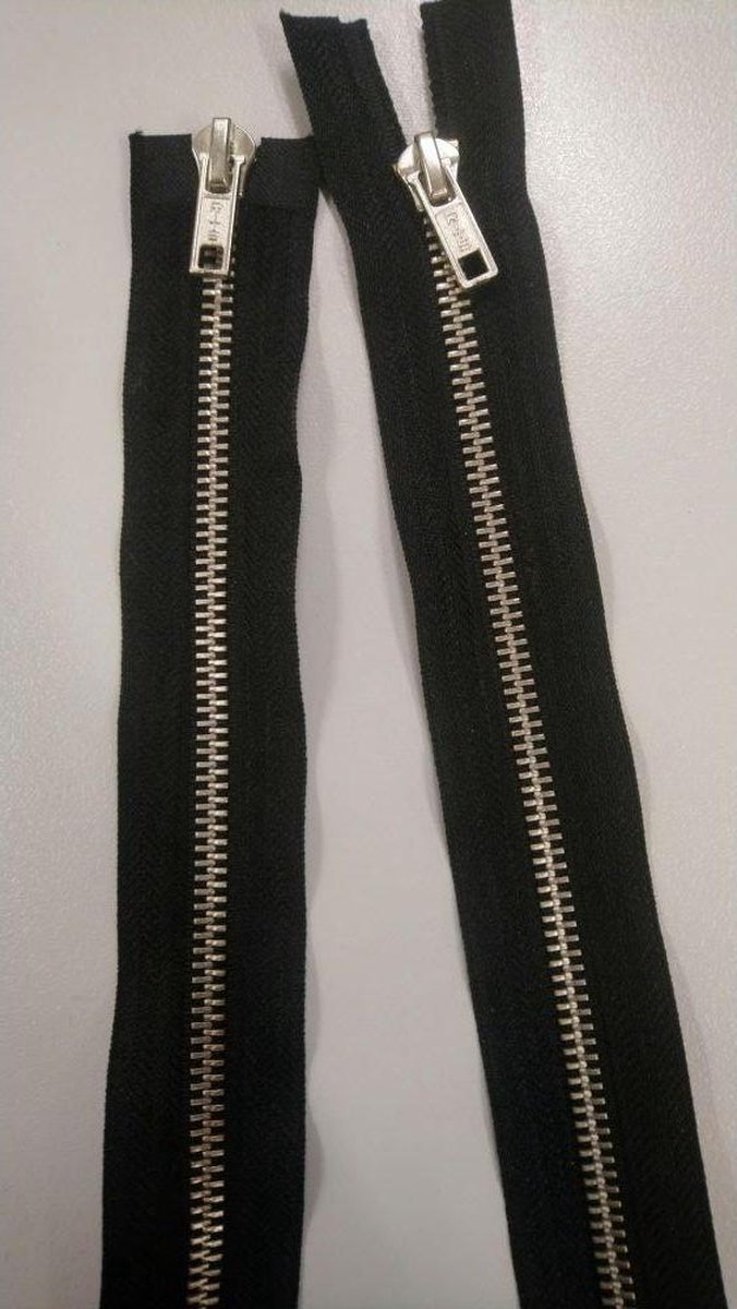 Dubbel deelbare Zwarte, Nikkeltandjes Rits, 65 cm, per stuk. Deze rits gaat dus ook open aan de onderkant. De rits heeft twee runners. Deze rits gaat van boven en van onderen open.
