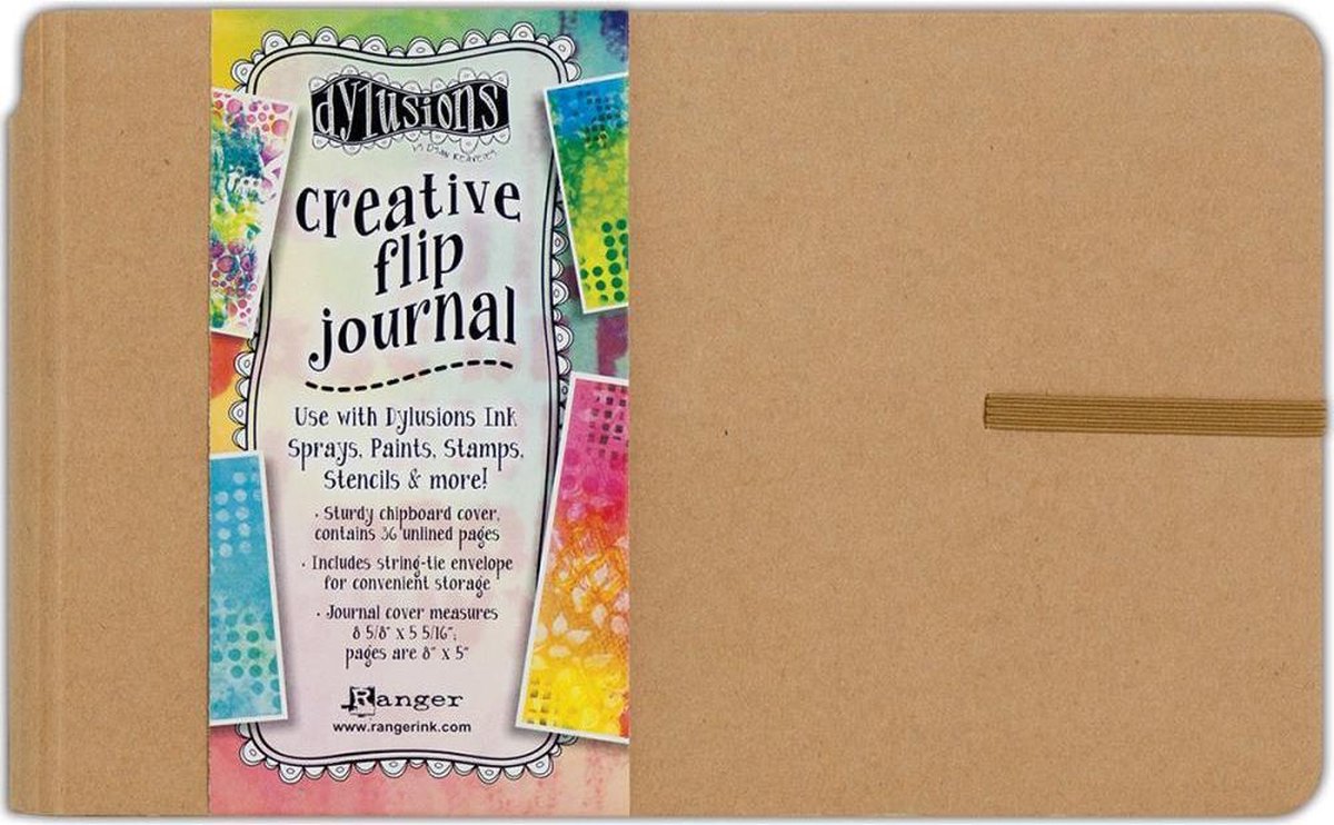 Een heerlijk flip journal in de afmeting 8 5/8"x 5 5/16". De bladzijdes zijn 8x5" (ongeveer 21x13 centimeter) Mooi papier waarop u prima uit de voeten kunt met al uw diverse soorten van inkt. Uiteraard is dit journal geschikt voor bewerking met gesso en andere mediums. In tegenstelling tot bij de gewone journals van dylusions is dit flip journal horizontaal georiënteerd.