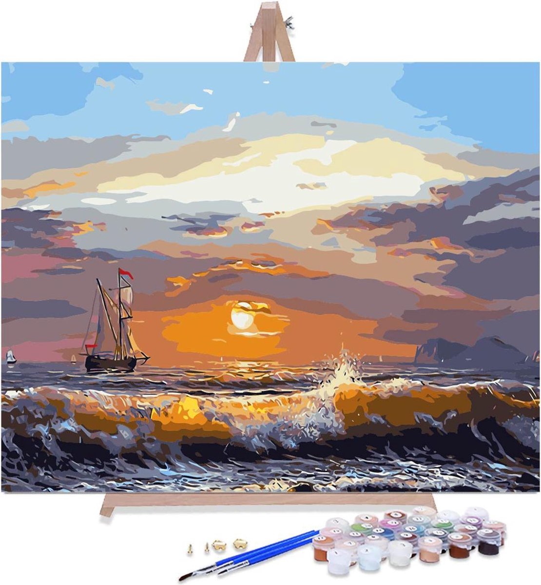 Eagle® Schilderen op Nummer Volwassenen - Boot aan Horizon - Gespannen op Houten Frame - 50x40cm