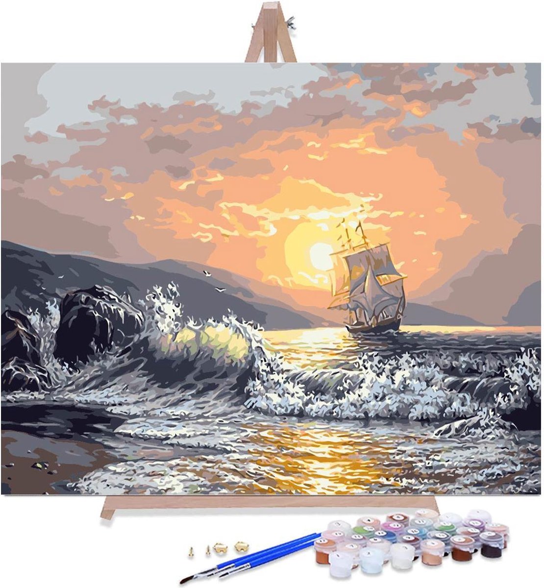 Eagle® Schilderen op Nummer Volwassenen - Boot in Zee - Gespannen op Houten Frame - 50x40cm