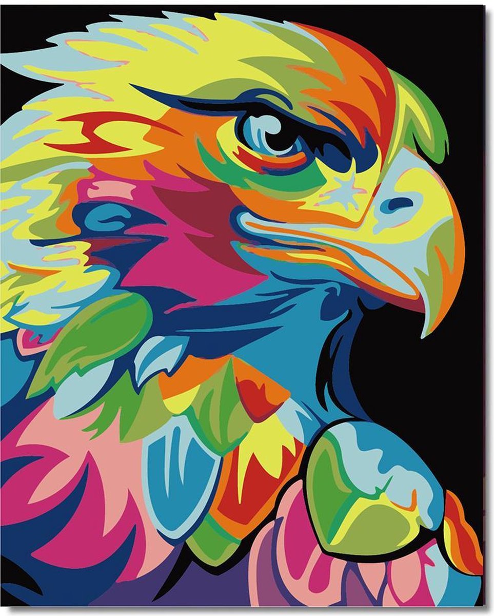 Eagle® Schilderen op Nummer Volwassenen - Gekleurde Adelaar - Gespannen op Houten Frame - 50x40cm