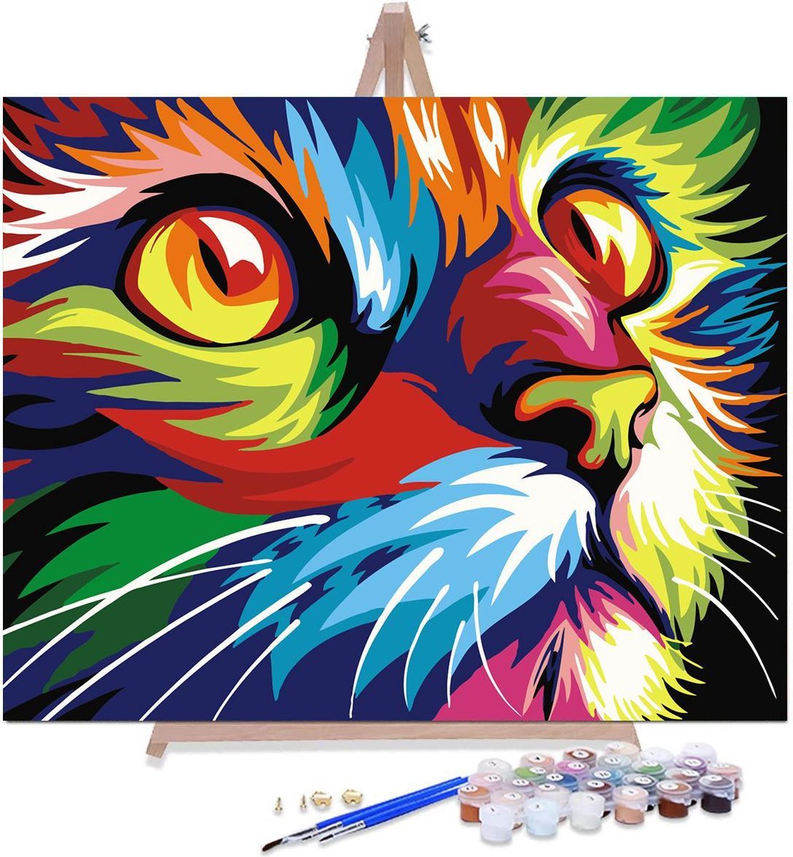 Eagle® Schilderen op Nummer Volwassenen - Gekleurde Kat - Gespannen op Houten Frame - 50x40cm