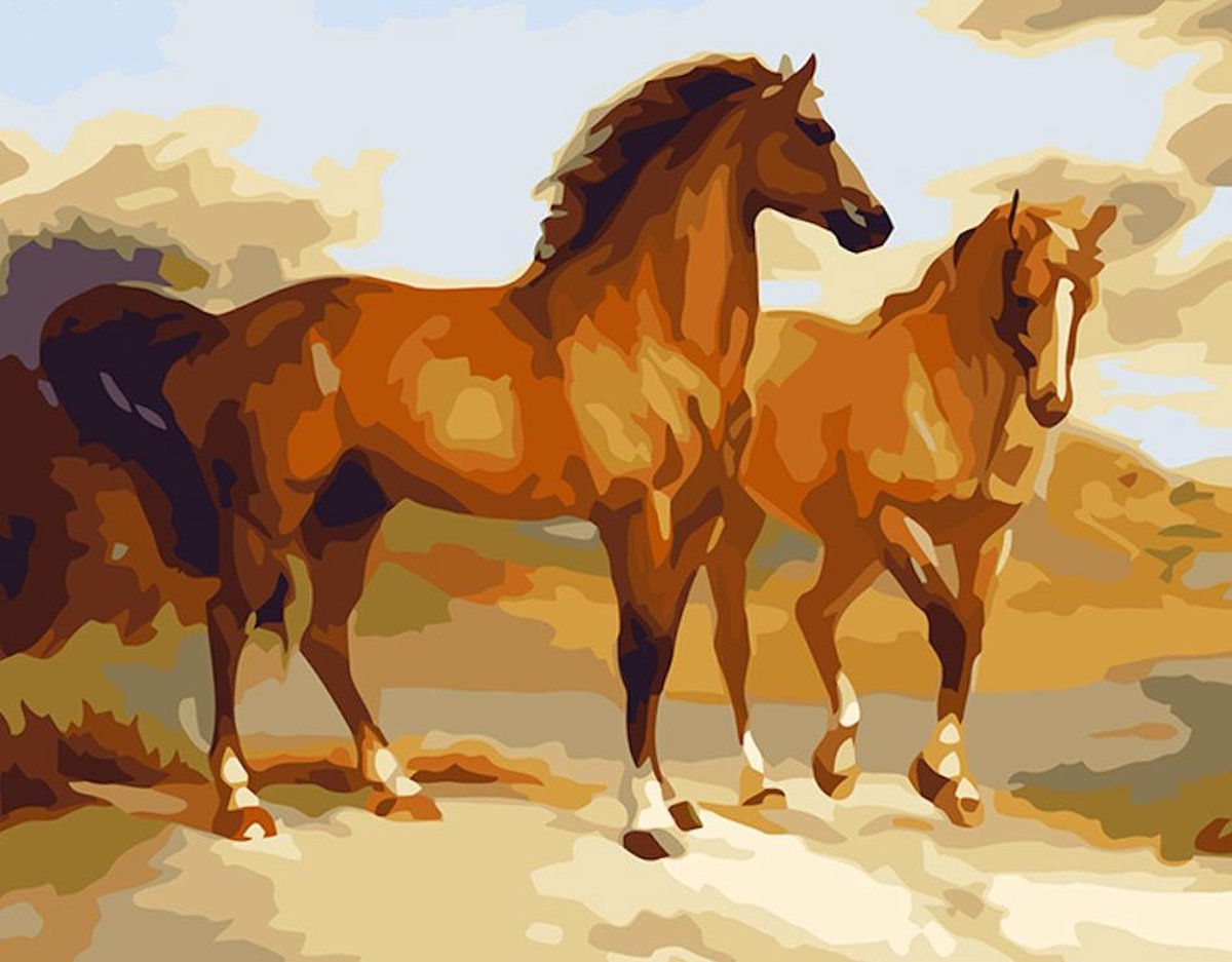 Eagle®? Schilderen op Nummer Volwassenen - Prachtige Paarden - Gespannen op Houten Frame - 50x40cm