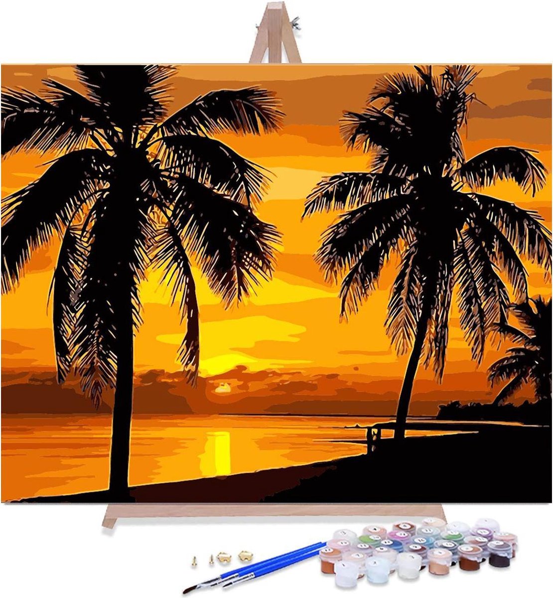 Eagle® Schilderen op Nummer Volwassenen - Tropische Zonsondergang - Gespannen op Houten Frame - 50x40cm