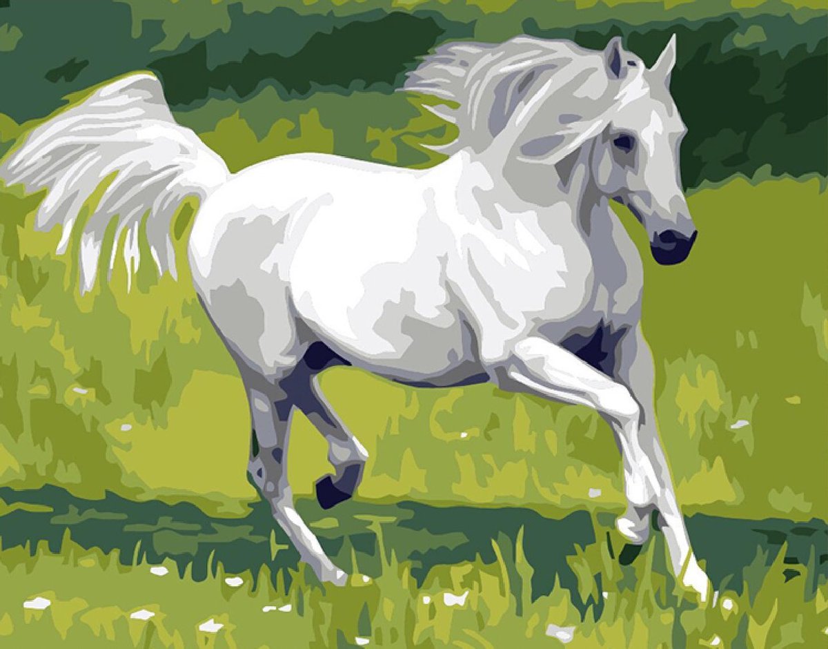 Eagle® Schilderen op Nummer Volwassenen - Wit Paard - Gespannen op Houten Frame - 50x40cm