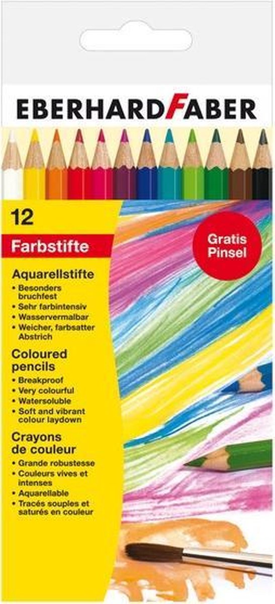 Aquarelpotloden bijzonder geschikt voor schilder- en tekenlessen. Met water te mengen, behouden zowel droog als nat hun intensieve en briljante kleur. Breukvast en makkelijk te slijpen. ook te gebruiken op leisteen en kunststof. In kartonnen etui met 12 potloden plus penseel.