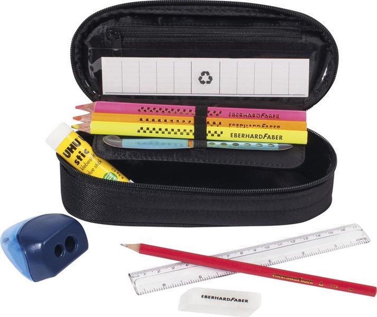 Gevuld etui in leuke dessins. Een hebbeding voor elke scholier. Assorti verpakt. Inhoud: 3 TRI Winner Neon kleurpotloden, 1 HB potlood, 1 gum, 1 liniaal, 1 lijmstift 8,2gram, 1 potloodslijper en ruimte voor een vulpen.