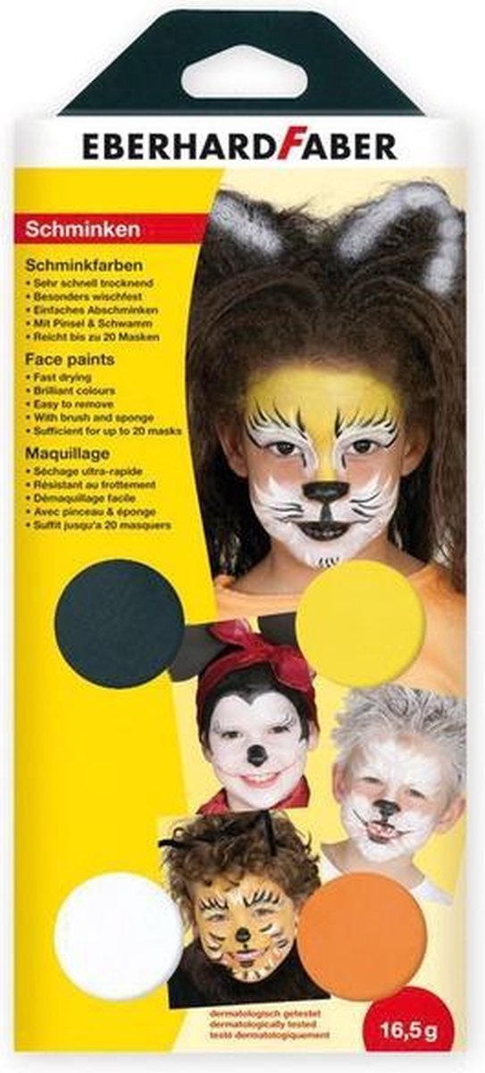 Schmink in briljante kleuren en van professionele kwaliteit. Geschikt voor school, feestjes, gezicht- en body painting. Dermatologisch getest. Zeer snel drogend, veegvast, afwasbaar met water en zeep en zeer goed dekkend.