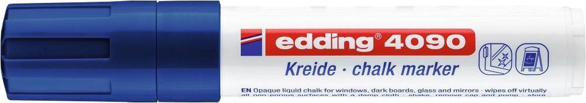 edding 4090 krijtmarker blauw - krijtmarkers - raamstift - raamstiften - chalkmarker -– krijtstift – glasstift – schoolbordstift – krijtbordstift – stoepbordstift