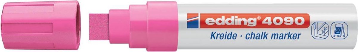 edding-4090 kalk marker / window marker neon roze 1Stuks 4-15 milimeter •Geurneutrale vloeibare krijt op waterbasis •Met vochtige doek eenvoudig te verwijderen •Download gratis raamtekensjablonen op edding.com/raamtekensjablonen •Extra brede schrijfdikte •Eenvoudig gebruik – in tegenstelling tot standaard krijt worden uw handen niet vies •Zorgt voor professionelere en elegantere schrijfletters of tekeningen dan elk ander krijt •Breed assortiment aan briljante kleuren – de fluorescerende kleuren worden bovendien zichtbaar onder UV-licht •Dop kan op de achterkant van de barrel worden vastgezet, zodat hij niet kwijtraakt •Verzegelingsfolie garandeert dat het product bij aankoop ongebruikt is •Breed kleurenpalet •Hoogwaardig merkproduct •Made in Germany