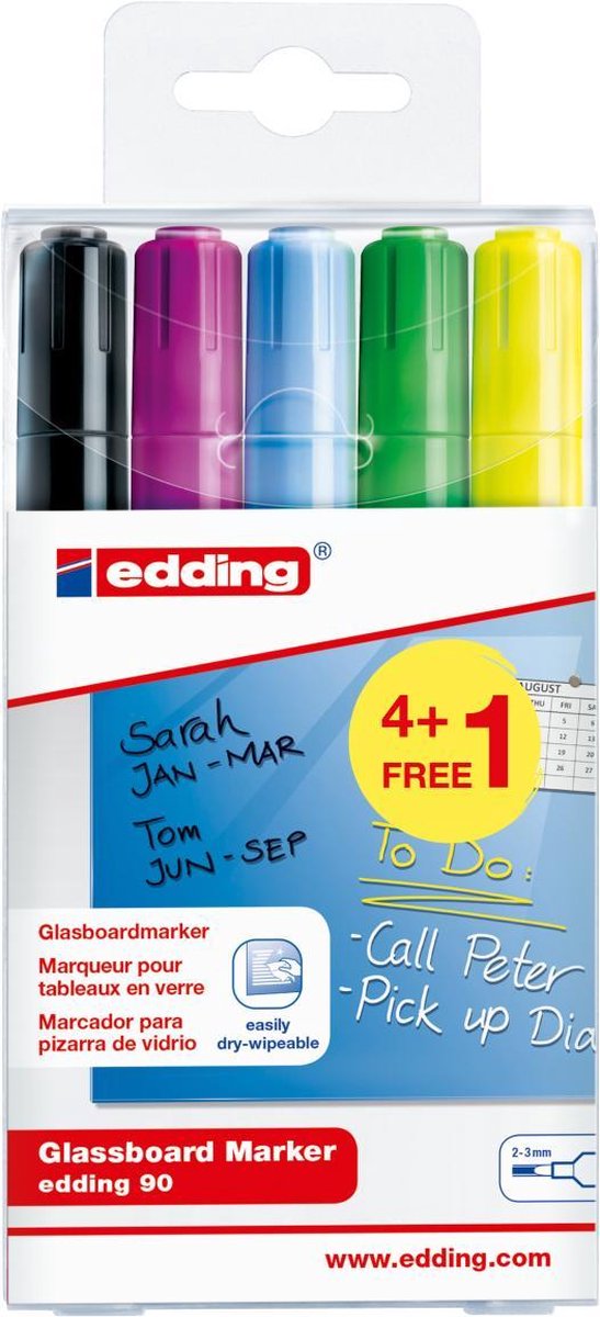Glassboard marker om te schrijven en markeren op de meeste glazen oppervlakken en glassboards. De inkt kan makkelijk droog van de meeste glazen oppervlakken en glassboards verwijderd worden. De ronde punt heeft een schrijfdikte van 2-3 mm. De inkt van de glassboard marker heeft dekkende en briljante kleuren. De inkt van de glassboard marker is lichtbestendig. Verkrijgbaar in de kleuren zwart, rood, geel, violet, lichtblauw, lichtgroen en wit.