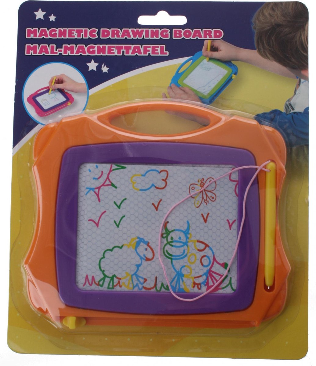 Eddy Toys magnetisch tekenbord Dit magnetische tekenbord biedt uren tekenplezier zonder knoeien. Met de magnetische pen maak je de mooiste tekeningen. En je wist het ook zo weer uit! Ideaal speelgoed om kinderen zoet te houden tijdens lange autoritten en een geweldige manier om de creativiteit te stimuleren. Specificaties: Kleur: oranje/paars Geslacht: junior Materiaal: kunststof Afmeting: 18 x 14 cm
