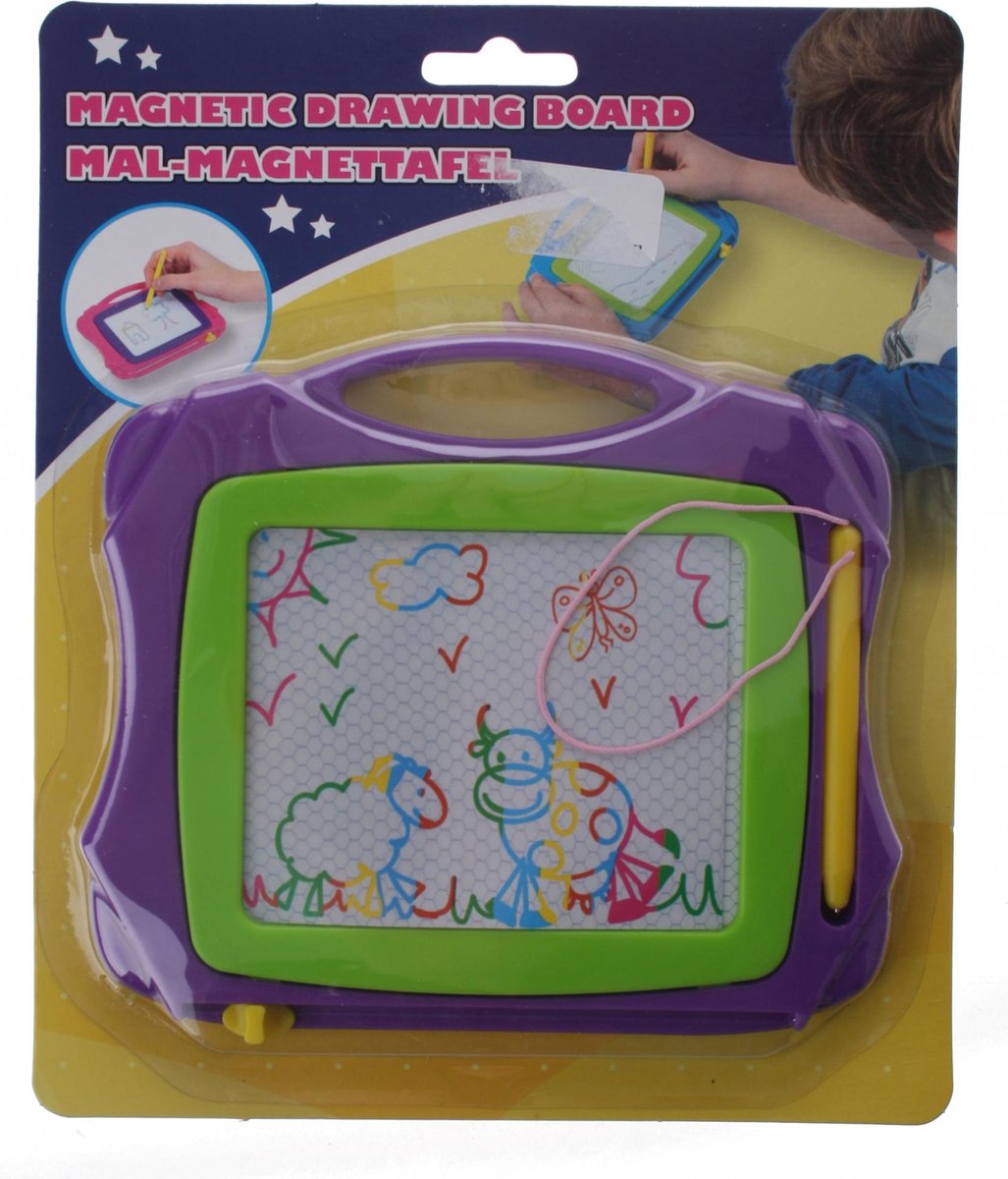 Eddy Toys magnetisch tekenbord Dit magnetische tekenbord biedt uren tekenplezier zonder knoeien. Met de magnetische pen maak je de mooiste tekeningen. En je wist het ook zo weer uit! Ideaal speelgoed om kinderen zoet te houden tijdens lange autoritten en een geweldige manier om de creativiteit te stimuleren. Specificaties: Kleur: paars/groen Geslacht: junior Materiaal: kunststof Afmeting: 18 x 14 cm