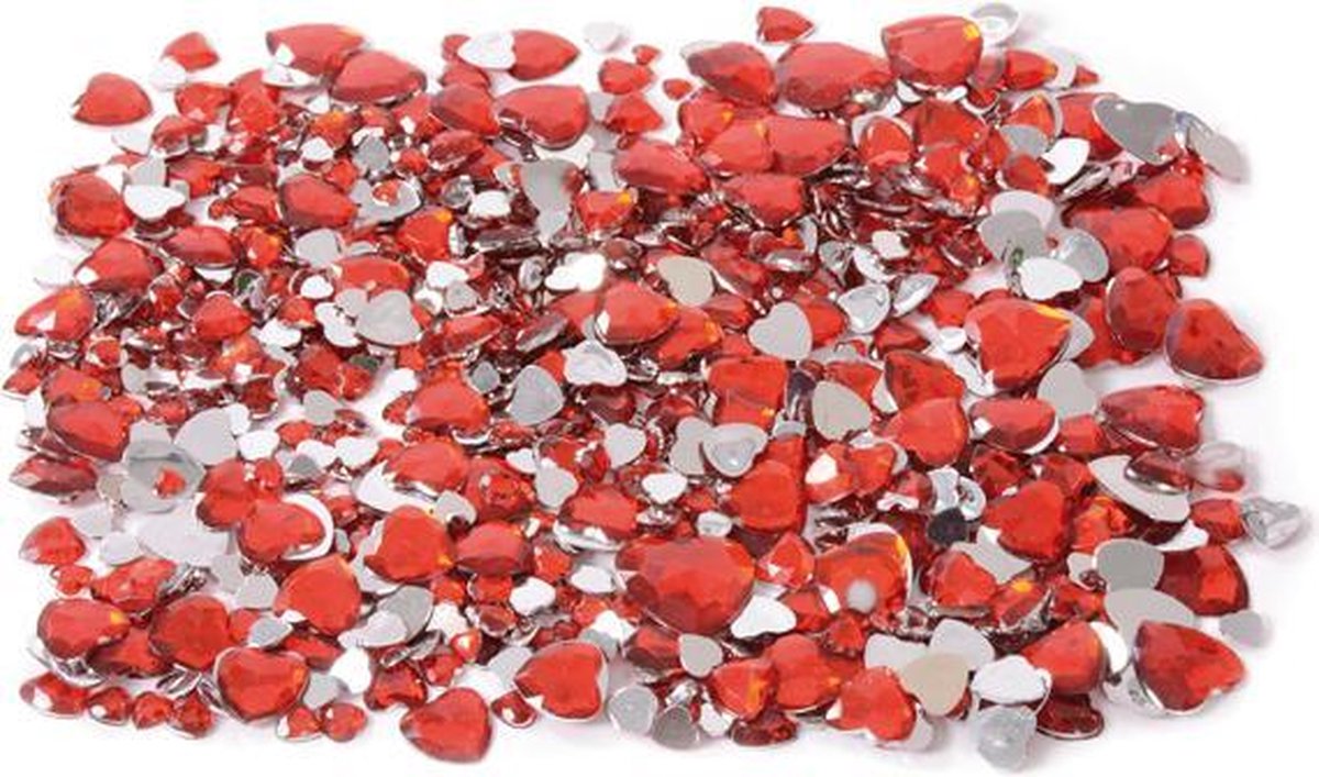 Om op dozen en vazen ??te plakken, om voorwerpen en kleding te verfraaien of als driedimensionale blikvanger op wenskaarten en moederdag-geschenken. De kunststoffen edelstenen zijn het hele jaar door in het seizoen als knutselmateriaal. Afmetingen: Ø 5 - 25 mm. 1000 stuks hart.