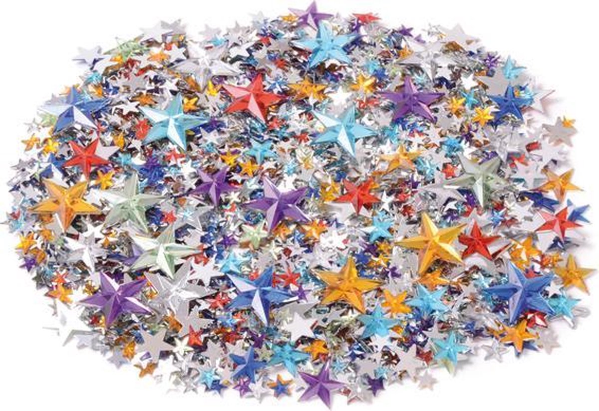 Om op dozen en vazen ??te plakken, om voorwerpen en kleding te verfraaien of als driedimensionale blikvanger op wenskaarten en moederdag-geschenken. De kunststoffen edelstenen zijn het hele jaar door in het seizoen als knutselmateriaal. Afmetingen: Ø 5 - 25 mm. 2000 stuks sterren.
