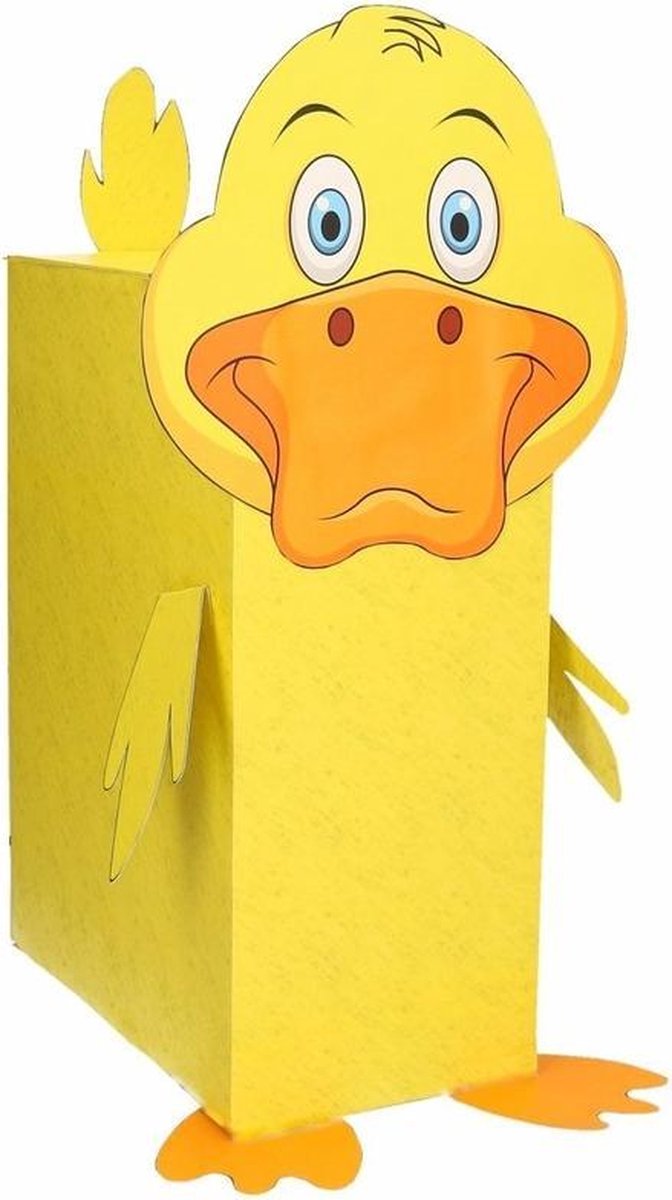 Eend zelf maken knutselpakket / Sinterklaas surprise. Compleet basis bouwpakket om een eend te kunnen maken zoals op de afbeelding. Dit pakket bestaat uit de basismaterialen en instructies die u nodig heeft om een eend te knutselen van ongeveer 41 x 16 x 35 cm. Daarna kunt u de surpise naar eigen wens versieren en personaliseren. Extra nodig: - Lijm - Schaar - Plakband / tape Ruimte voor kado: In het doosje is een ruimte van ongeveer 35 x 24 x 12 cm. Bestaande uit: 1x Doosje 2 bruin zonder opdruk, 6x Basis artikel dierenmasker eend, 1x Instructievel dieren knutselpakket