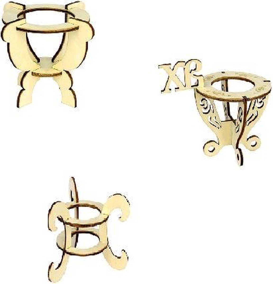 Bouwpakket van 3 verschillende houten eierdopjes. In iedere gewenste kleur te schilderen. Breng de gezelligheid op tafel!