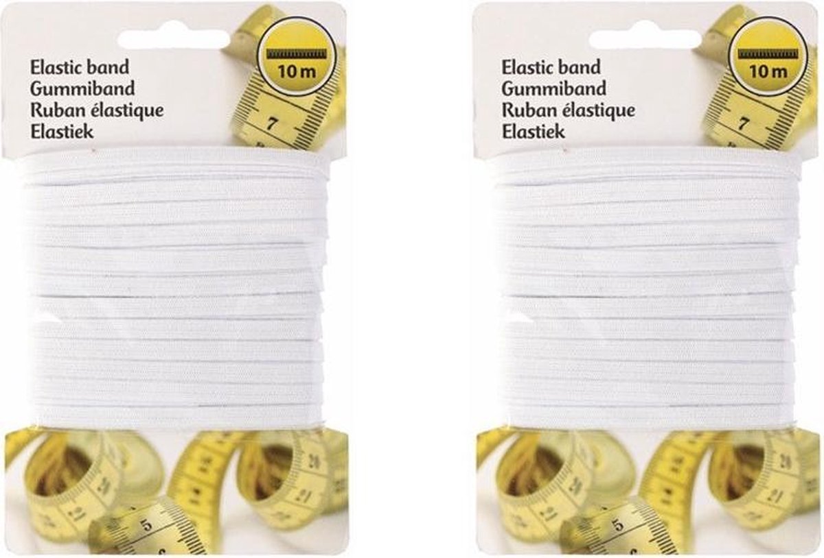 Elastiek band van 20 meter in het wit. Toepasbaar op verschillende kledingdoeleinden. Breedte: 5 mm. U kan hiermee kledingstukken, knutselen of mondkapjes maken. Hobby knutselen en kleding maken materialen.