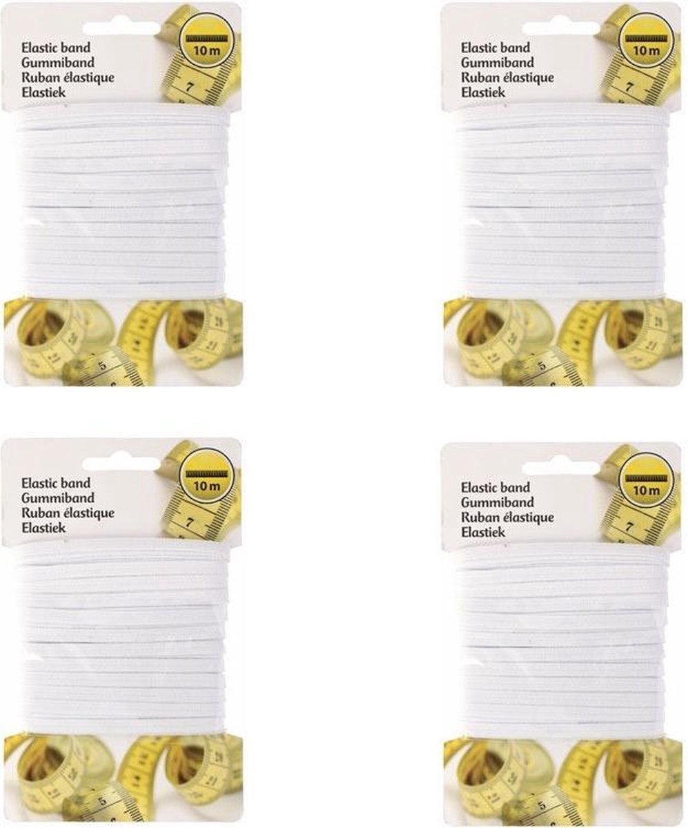 Elastiek band van 40 meter in het wit. Toepasbaar op verschillende kledingdoeleinden. Breedte: 5 mm. U kan hiermee kledingstukken, knutselen of mondkapjes maken. Hobby knutselen en kleding maken materialen.