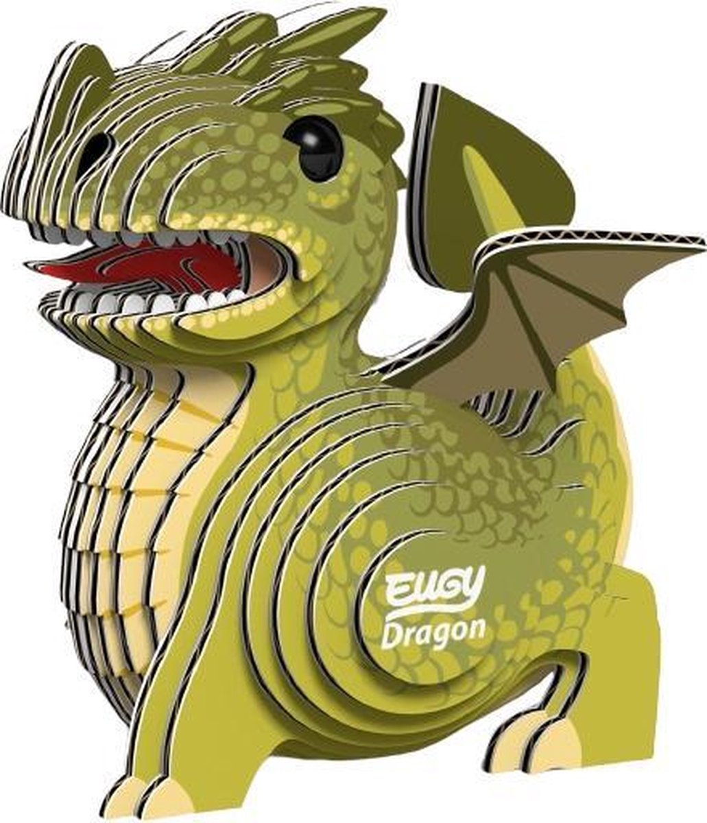 Eugy Dragon Ontwerp jouw eigen draak met deze prachtige set! Alles wat je nodig hebt zit in de doos. Het is overigens ook erg milieuvriendelijk én veilig door het biologisch afbreekbaar golfkarton en de niet-giftige lijm. Zet hem in elkaar en verzin de mooiste fantasieverhalen met jouw draak! Specificaties: Kleur: groen Geslacht: junior Materiaal: karton Lengte: 8 cm Breedte: 6 cm Dikte: 2,5 cm Leeftijd: vanaf 6 jaar