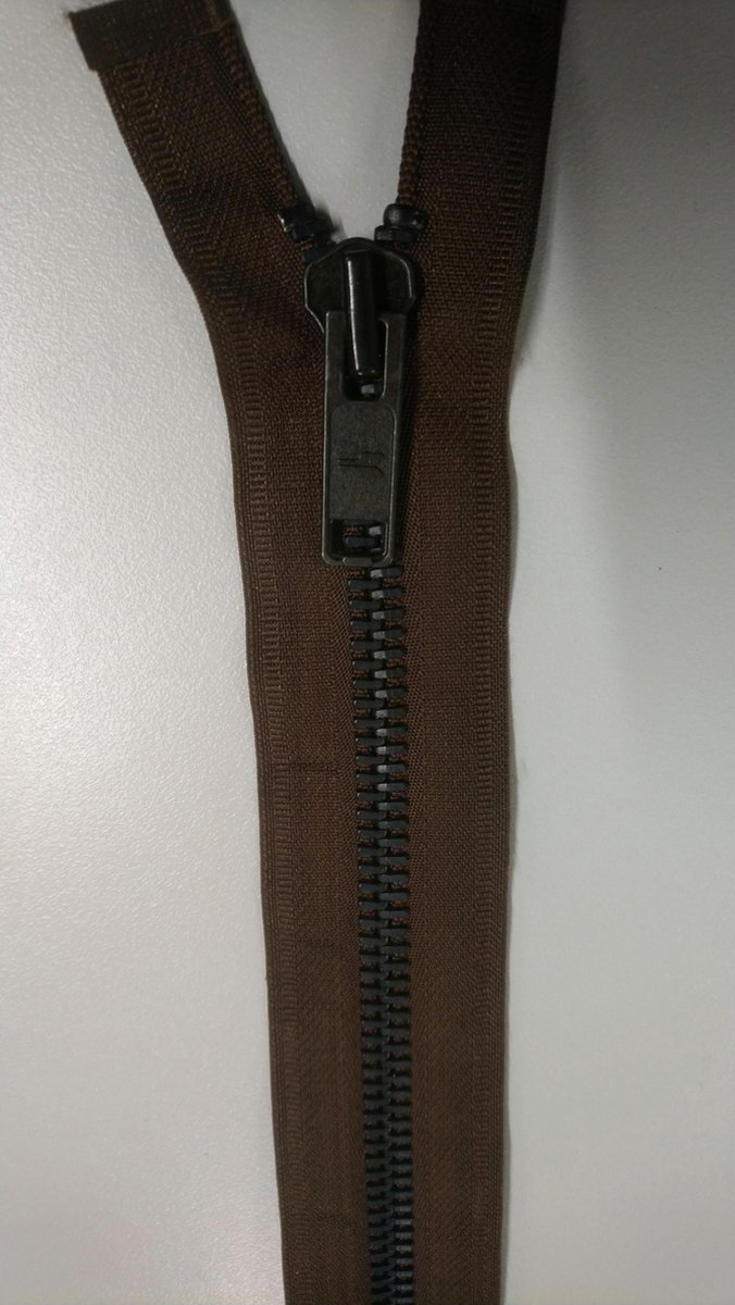 Productbeschrijving: Extra zware deelbare bruine rits, Oud Messing 9mm, lengte 65 cm Deze rits zit vaak in de duurdere merk jassen, en motorjassen. Deze rits is zeer stevig.